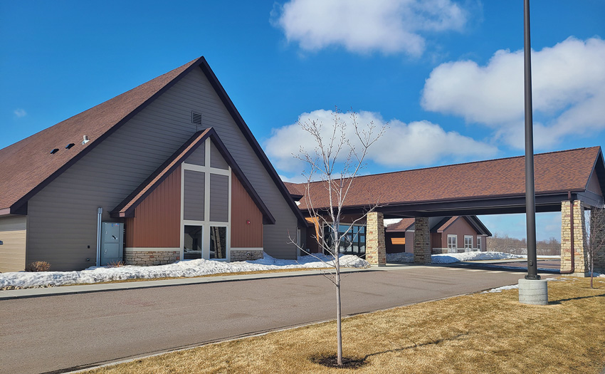 This project involves a single-story building addition with mezzanine including a fellowship hall, gathering area, nursery, expanded worship, and support functions. There was a new main entrance added with sip panels and exposed steel trusses, a porte cochere, additional asphalt parking lot, and the courtyard landscaping was removed to create a fellowship hall that connected to the main foyer. The classrooms, kitchen, and office spaces were remodeled, and there were two new classrooms added.