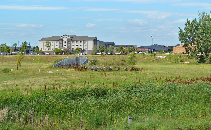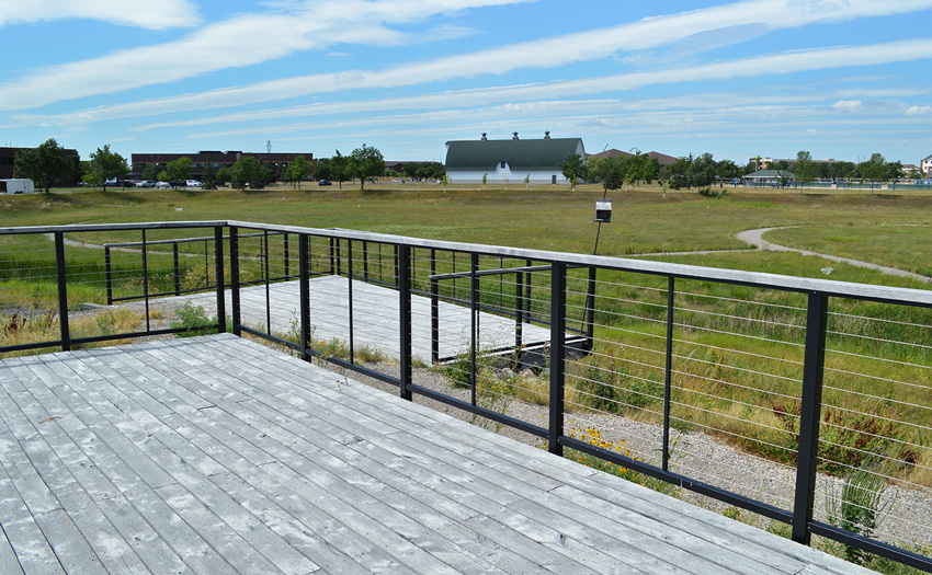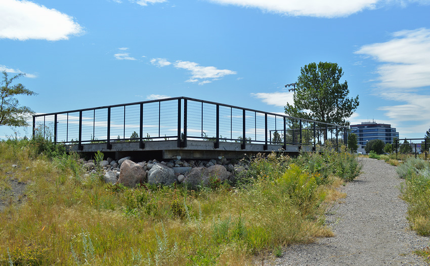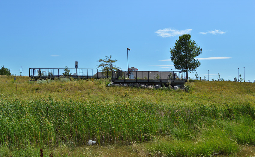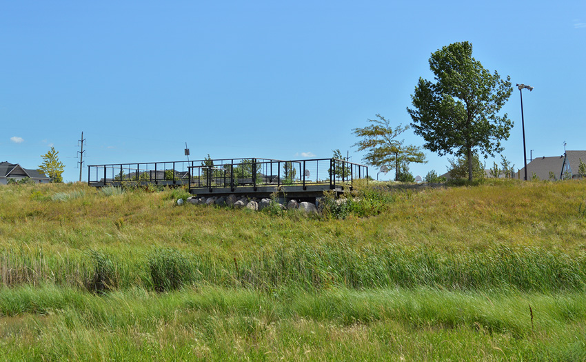 The Overlook project was located within Rabanus Park next to Schlossman YMCA. This project was done to create some useful park space within a large stormwater retention basin. We installed an overlook deck and natural play area. The overlook deck is constructed of concrete piers, structural steel, white oak decking, and a railing system. The natural play area used logs and rocks to create various play structures for children. Granular material was used to create paths throughout the basin. There was also a walking bridge installed over the waterway for people to access both sides of the park.