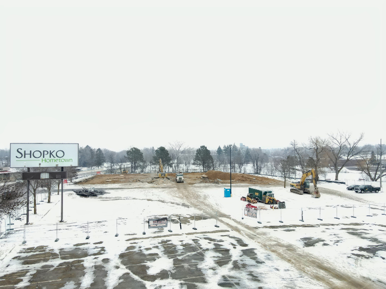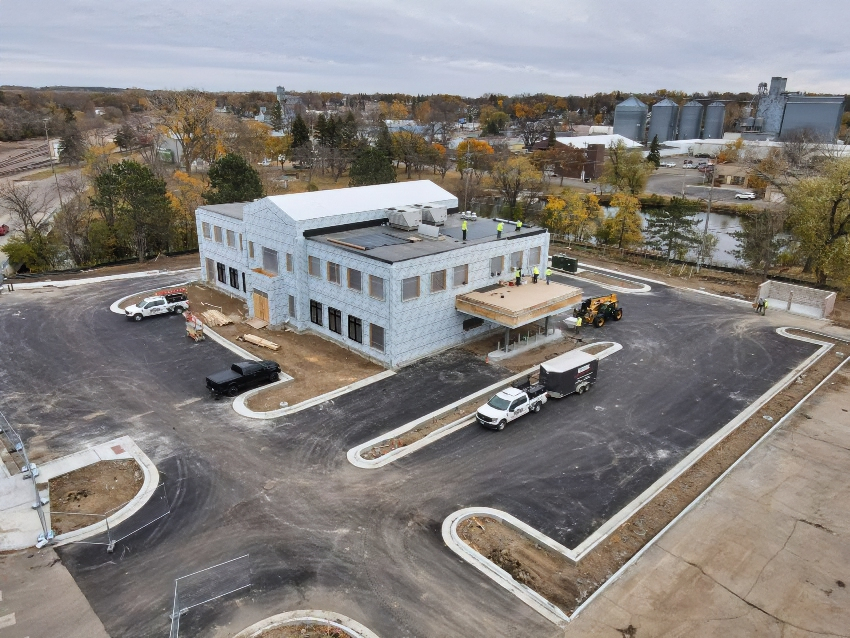 The construction of a new two-story FM Bank branch facility, at the former Shopko Building site, will be located at the intersection of East Lincoln Avenue and Friberg Avenue in Fergus Falls, MN. The old single-story Shopko building has been demolished to make way for this modern, state-of-the-art bank. The new FM Bank building will feature two drive-up facilities for customer convenience. The main level will encompass approximately 9,000 square feet, with 8,650 square feet dedicated to bank operations and 1,250 square feet allocated for a future coffee shop tenant. The upper level will span 7,500 square feet, including 900 square feet reserved for future expansion. Situated on a 2-acre lot, this project aims to enhance the community’s banking experience while contributing to local development.