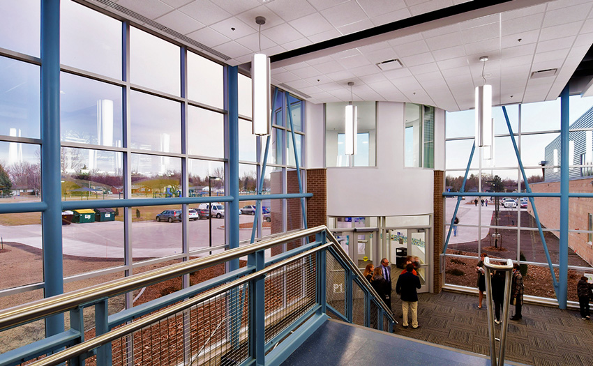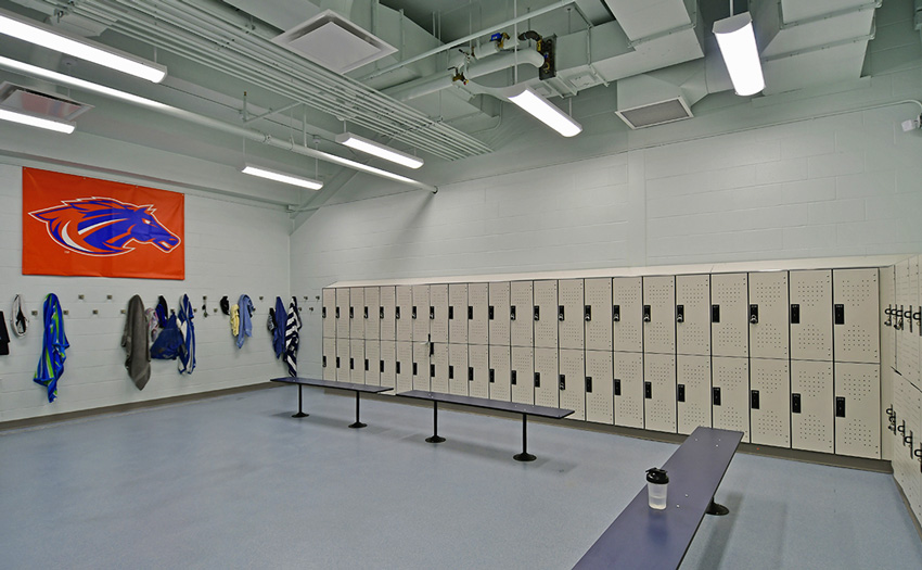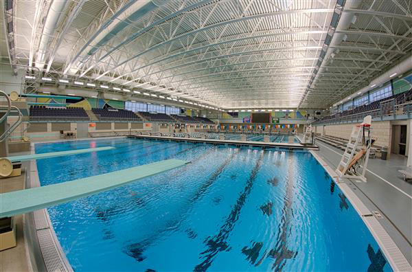 The Hulbert Aquatic Center is a new state-of-the-art swimming facility with a 50-meter Olympic-sized competition pool. The new 45,000 sq.ft. addition, which includes the 50-meter pool, also contains stadium seating and a mezzanine for up to 1,100 spectators. There are large team lockers, coaches’ offices, and a large common area which also includes the administrative offices. The Hulbert Aquatic Center consisted of remodeling the existing L.E. Berger pool, which was turned into a lesson pool, and a large area for dry training. The existing locker rooms were also renovated to make it more convenient for the swimmers.