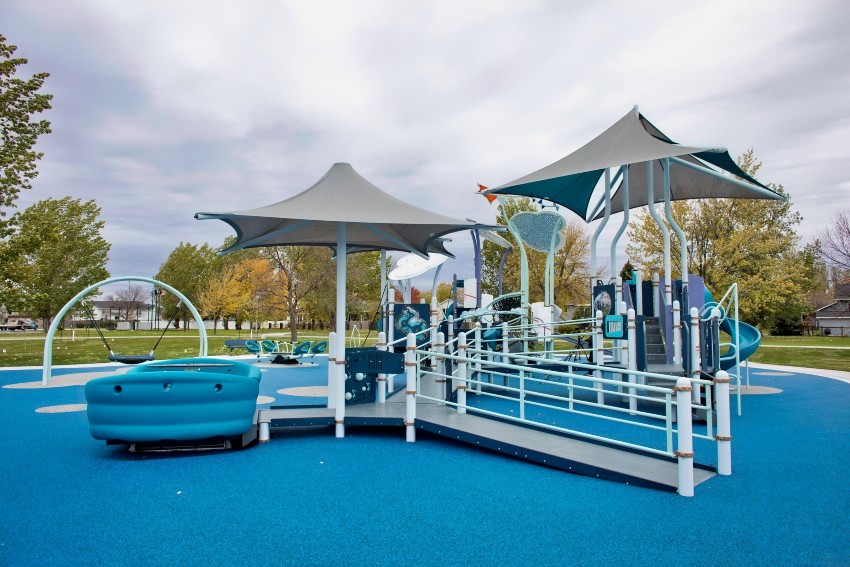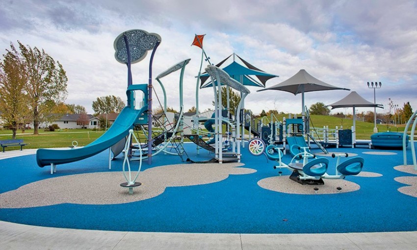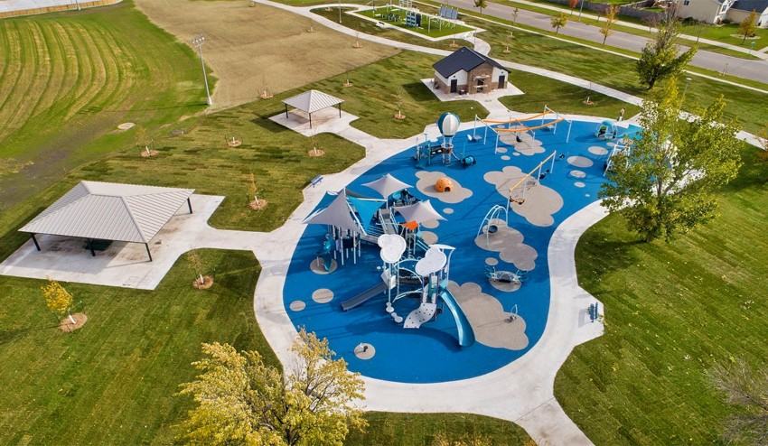 This project included a complete renovation of an existing 10 acre West Fargo City Park. New park improvements include: 12,00 square foot inclusive & accessible playground with rubber surfacing. Along with a 4,000 square foot Ninja Challenge obstacle course. The site now also features a restroom facility with drinking fountains, two open shelters, two updated ice rinks, one of which is equipped for pickle-ball in the summer months, new walking/biking paths, expanded parking off of 17th Ave, and relocation of the sledding hill.