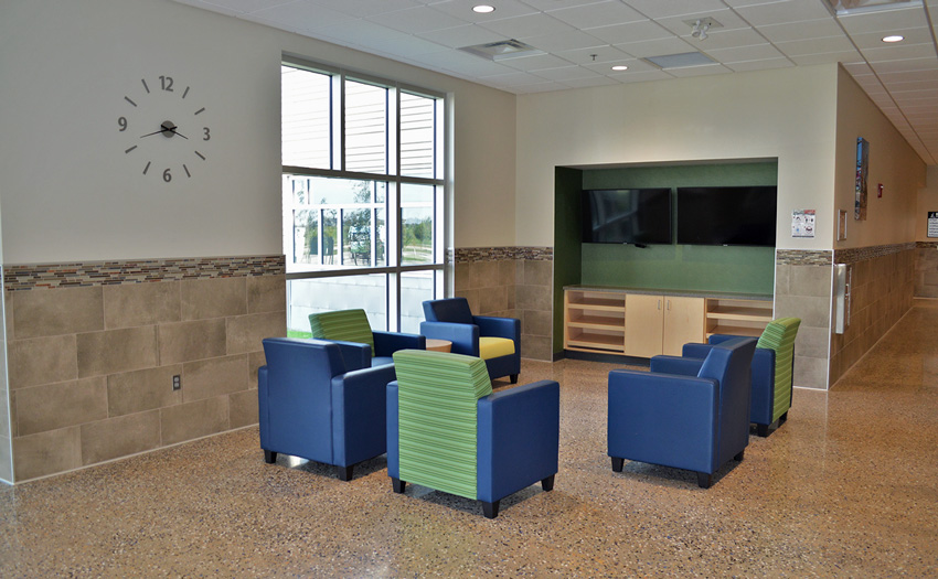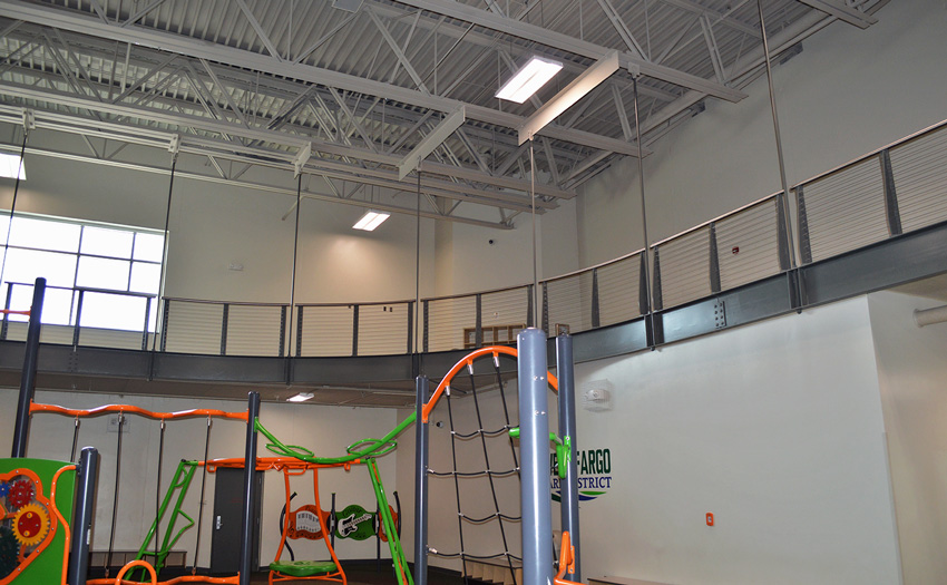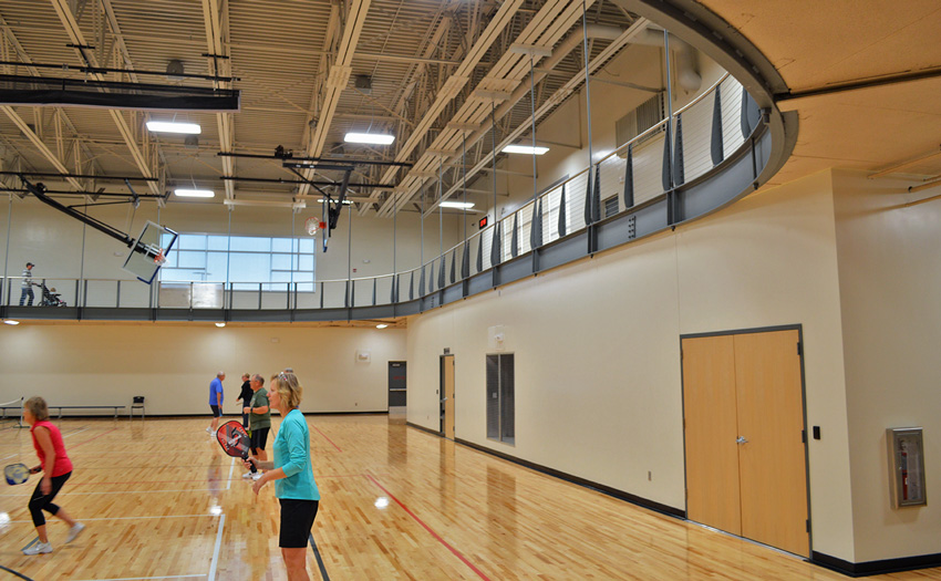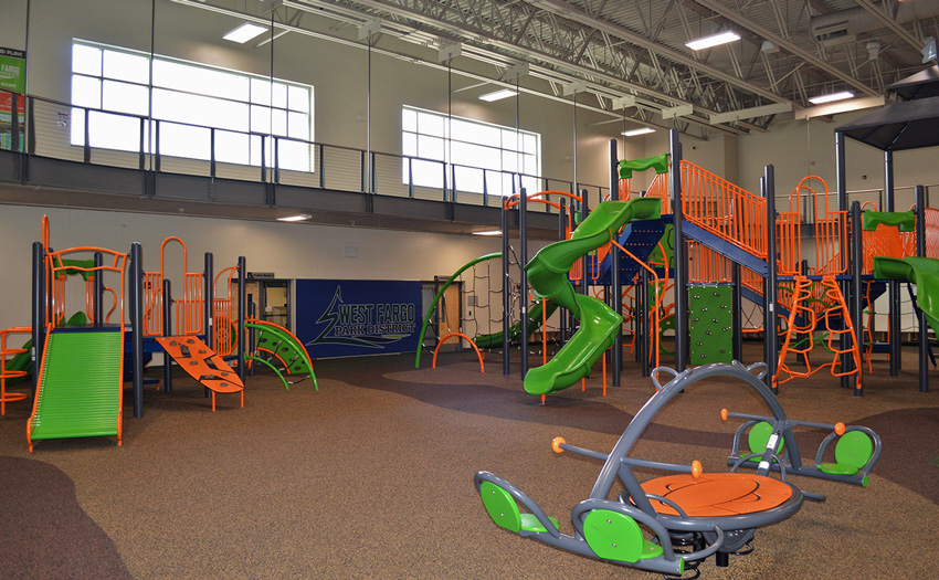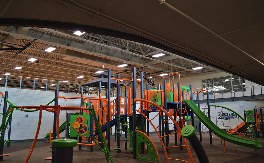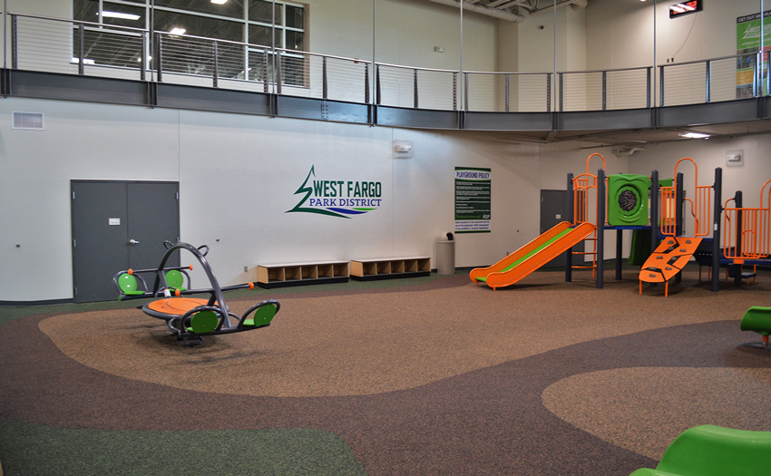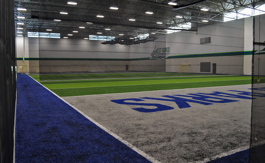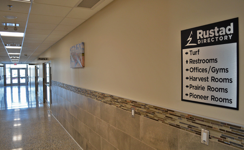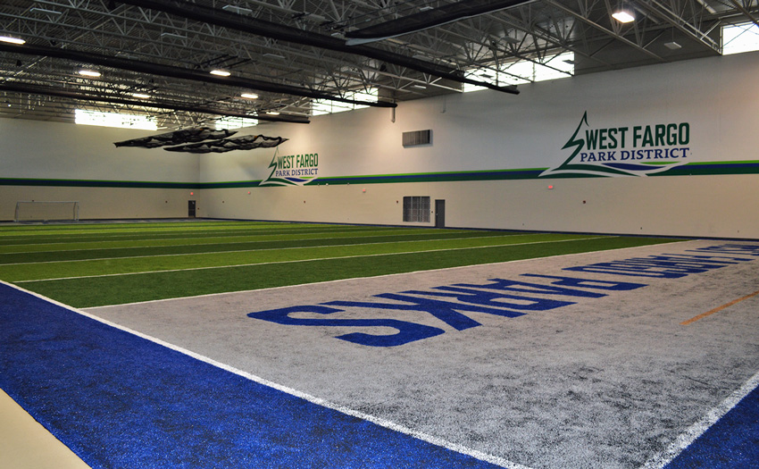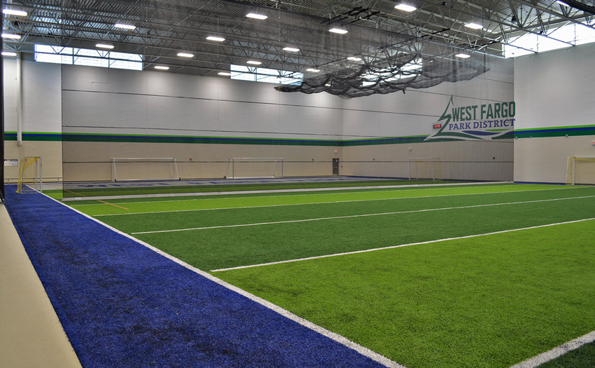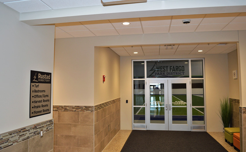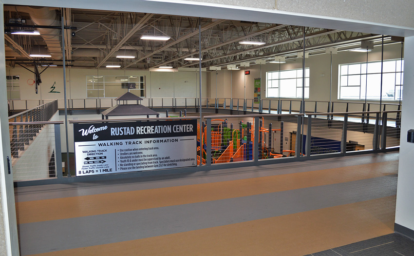 The Rustad Recreation Center is an expansion project providing additional recreation and activity areas. The majority of the expansion was for an indoor artificial turf and a multi-sport activity room. Party, arts and crafts, and meeting rooms were included for facility support. This is a single-court gymnasium with an extension of the elevated running track which is completely open to the area below. This expansion consisted of structural precast panels, a structural steel frame with steel bar joists, and concrete block bearing with structural steel. This expansion project consists of 55,095 sq.ft.